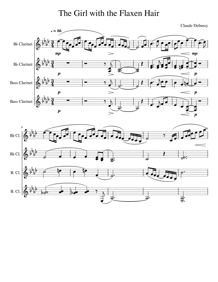 The Girl With The Flaxen Hair Clarinet Quartet Sheet Music For Clarinet In B Flat Clarinet Bass Woodwind Quartet Musescore Com